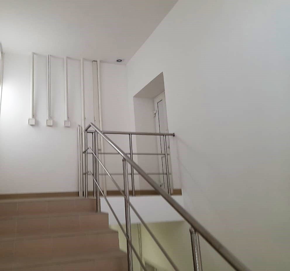 В ходе капитального ремонта были обновлены лестничные марши, выполнены общестроительные работы: по устройству утеплителя из керамзита и стяжки, произведено покрытие пола плиткой, осуществлена подшивка потолка гипсокартонном, выполнена покраска стен и потолков. Также установлены дверные блоки и произведен монтаж поручней.
